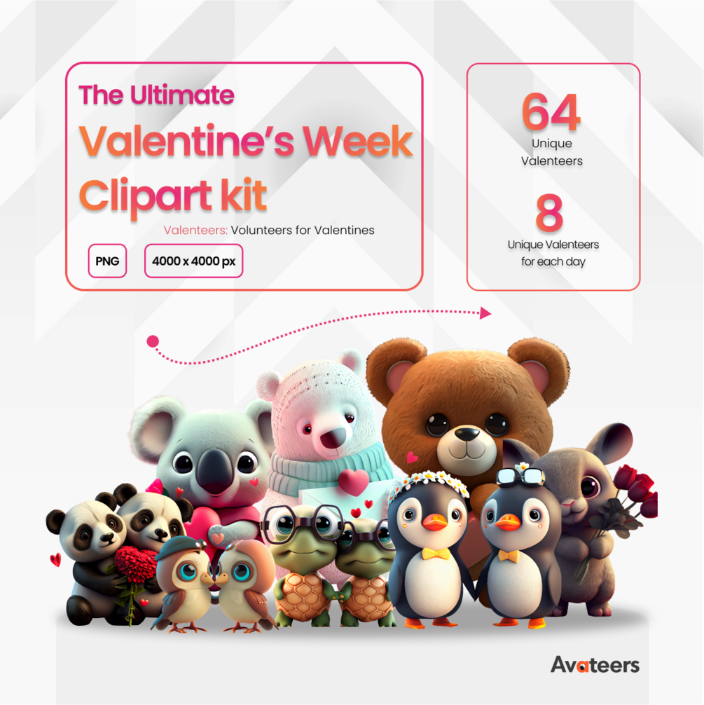 Our unique "Valentine's Week Clipart Kit" offers cartoon animal cutouts that will help you grab the attention of your audience and make a lasting impression.